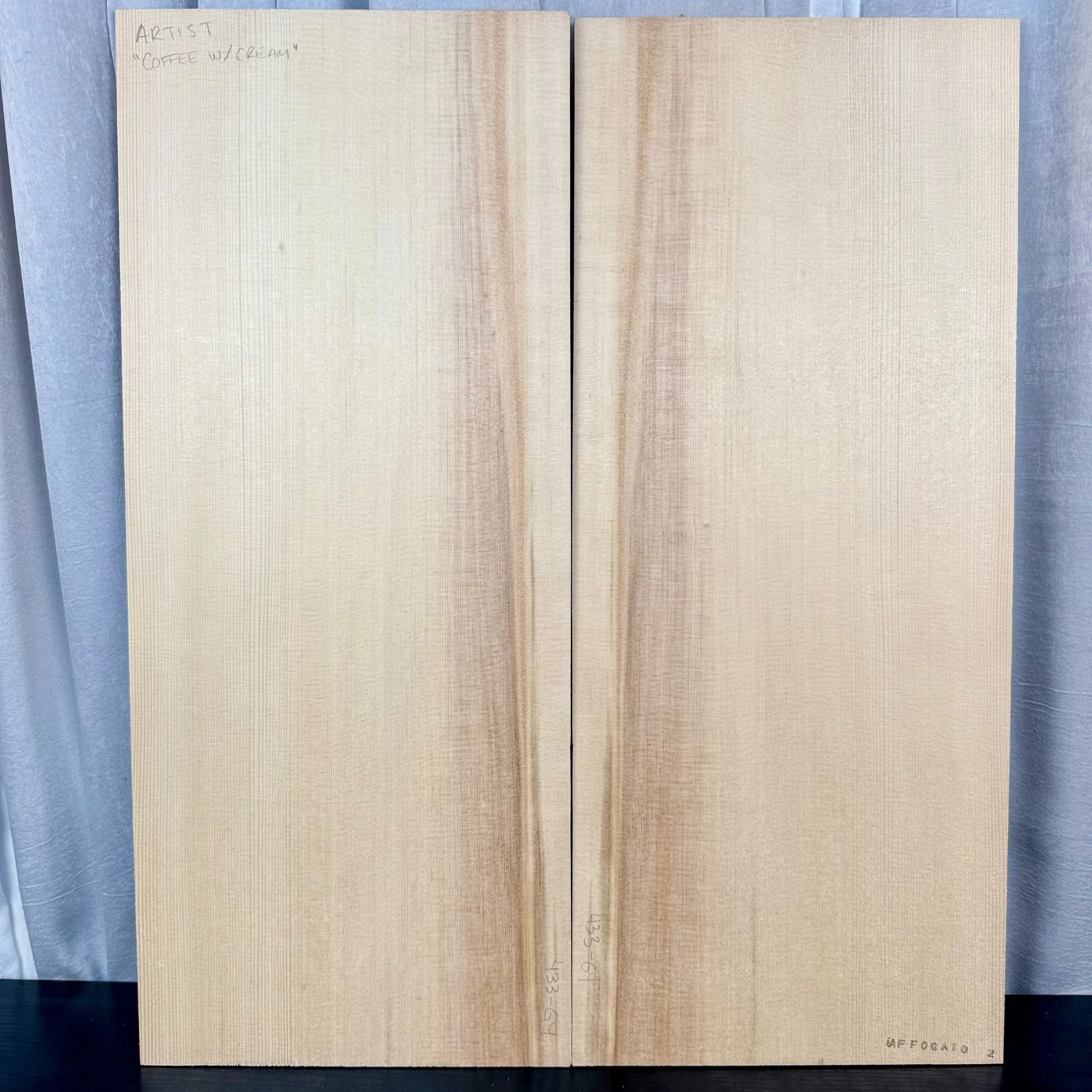 The Affogato Series name is inspired from the Italian dessert—espresso poured over vanilla ice cream—because the wood mirrors that same striking contrast. These tops feature rich, coffee-like streaks flowing into creamy, pale spruce. The effect is both natural and indulgent, evoking warmth and elegance in every set.