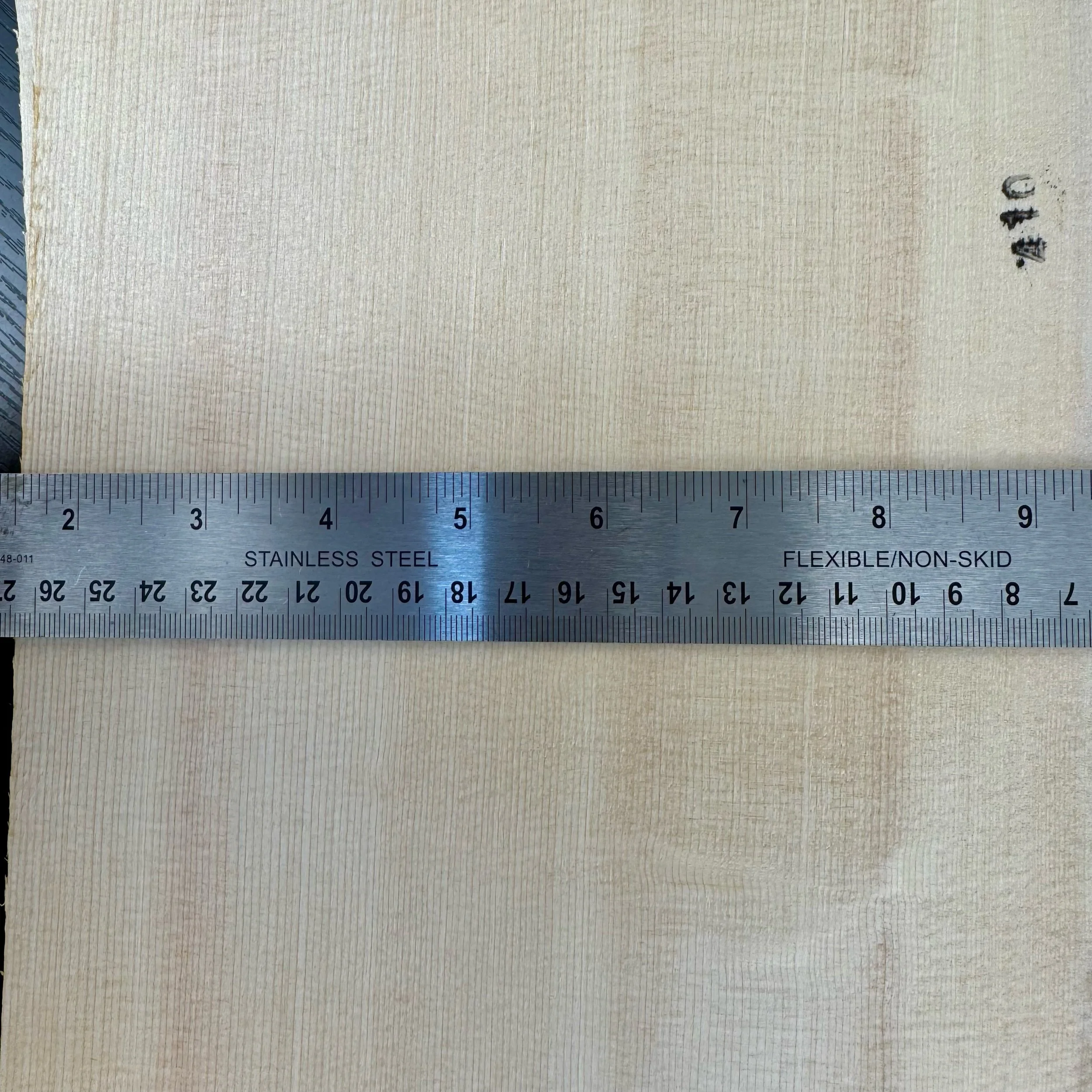 This unique top has a distinct bear claw figuring on warm tones across. Slight cross grain flecking is visible.