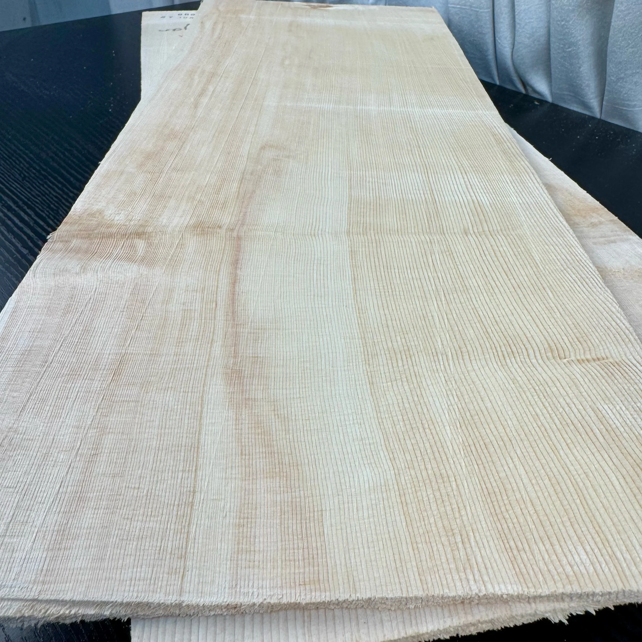 This unique top has a very rare burl growth mixed with an extremely unique colour pattern and consistent tight grain. The top has excellent silk and cross grain flex paired with bookmatched bearclaw. The large grain ripple feature is due to the burl growth. We are calling it dragon’s claw.
